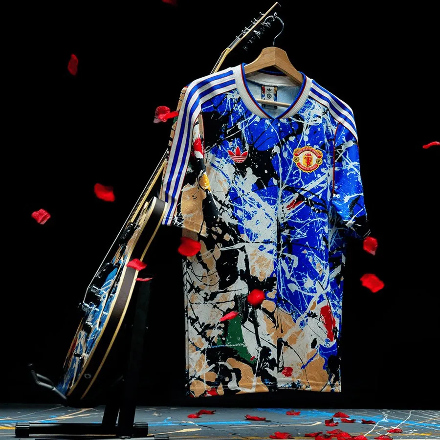 此系列的核心单品是曼联和石玫瑰乐队联名球衣,它将足球传统与大胆的艺术表达融为一体,堪称宣言级作品。球衣满印源自乐队艺术作品的图案,采用提花面料匠心打造,兼顾日常穿着的舒适度与耐用性,并同步推出长袖版本。